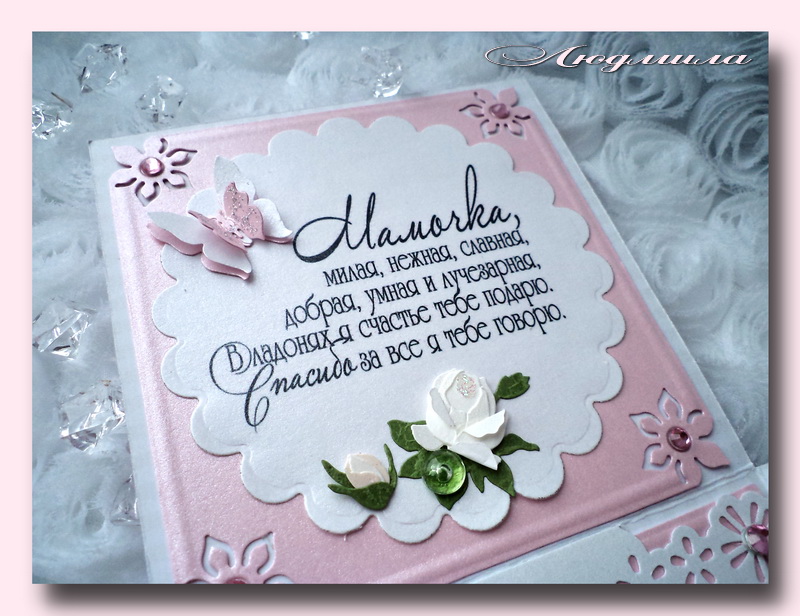 Одна милая и чудесная девушка Наташенька решила поздравить своих 2-х мам (да...да... родную и свекровь) рукодельными подарочками. Выбирала Наташа подарочные наборы из моих ранее сделанных работ. И было решено, что для её мамы мы сделаем аналог коробочки "Розовая нежность", а для мамы мужа - подарочный набор "Розы для мамы". Только в другом цвете)) И обязательно с мылком!